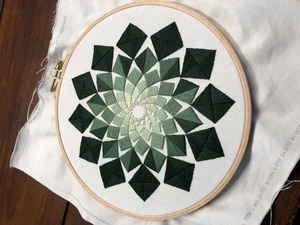 - Groene borduursampler ontworpen door Maria Diaz