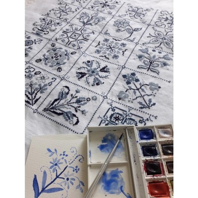 Patroon Mystery sampler Blue Squares - Deel 5 en biscornu's
