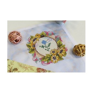 Inhoud: 14 count Aida, wit. Borduurgaren. Naald. Instructies. Telpatroon.