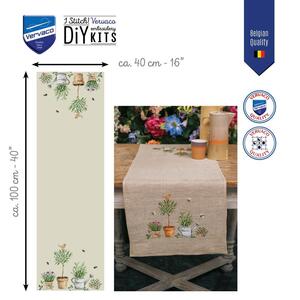 Borduurpakket Vervaco Linnen Tafelloper ‘Tuinspullen’