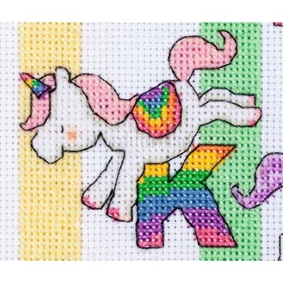 BB85-PATROON EEN EENHOORN-ALFABET IN REGENBOOGKLEURTJES
