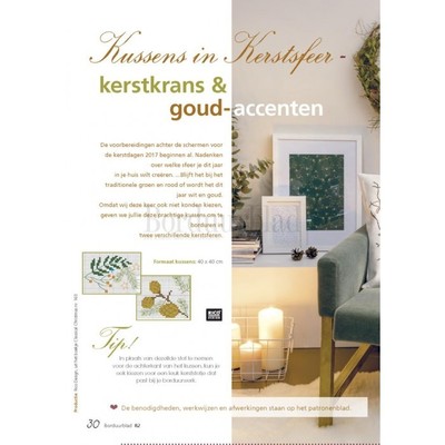 Onderstaande producten zijn net als Patroon Kussens in Kerstsfeer - kerstkrans & goud-accenten te vinden in Borduurblad 82
