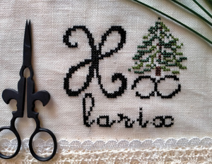 Slinger de stof om met het rijggaren om uitrafelen te voorkomen. Zoek het midden van de stof met behulp van een centimeter en begin vanuit het midden met borduren. Borduur in kruissteek met twee draden over twee weefseldraden volgens het telpatroon op het patronenblad. Borduur in stiksteek met één draad.