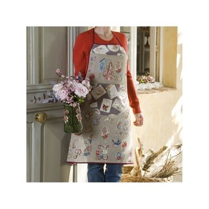 Offwhite linnen borduurstof. DMC in de op de teltekening genoemde kleuren. Borduurnaald met stompe punt nr. 22-24. Borduurschaartje. Rijggaren.
