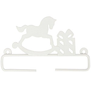 Wit metalen hanger om bijvoorbeeld een borduurbandje aan te hangen. Afmetingen: 21cm.