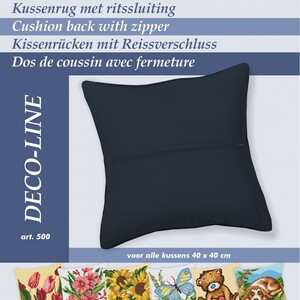 De kussenrug met ritssluiting is eenvoudig te bevestigen aan elk geborduurd kussen.