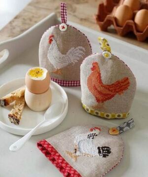 Poules, Coqs et Poussins au Point de Croix, door Perrette Samouïloff
