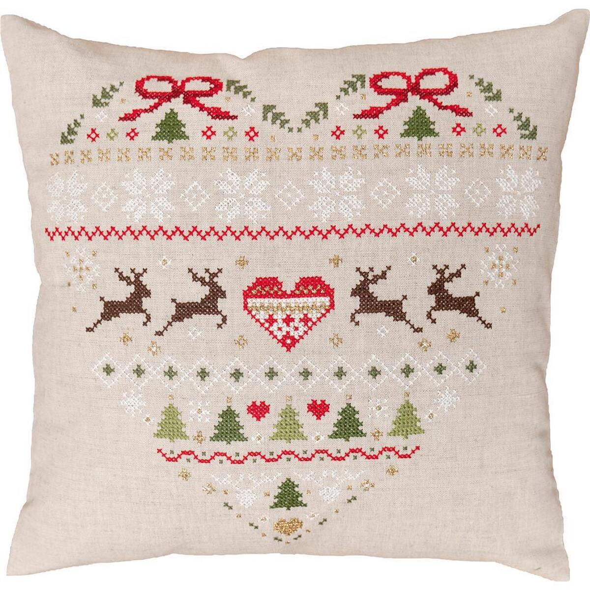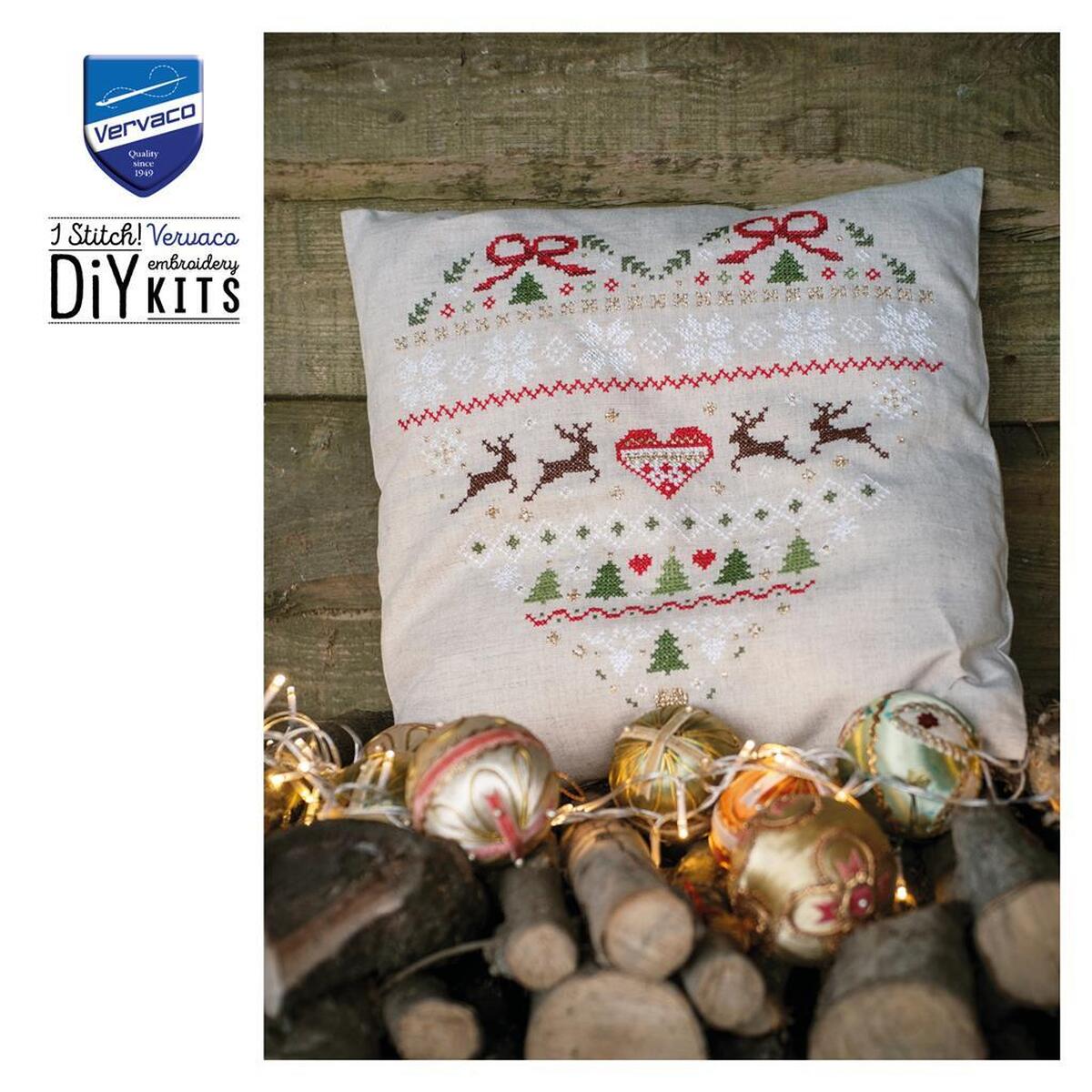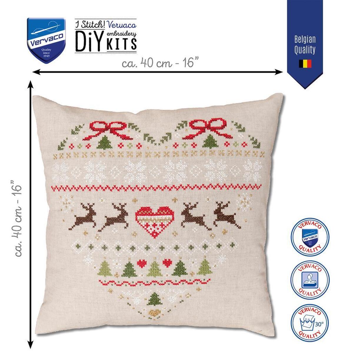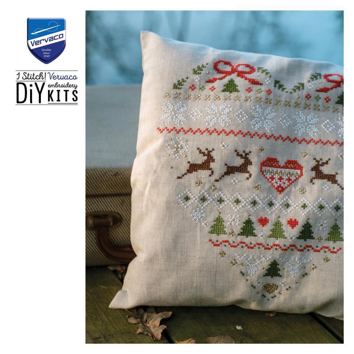 Inhoud: Voorbedrukt kussen. Borduurgaren. Naald. Instructies. Telpatroon.