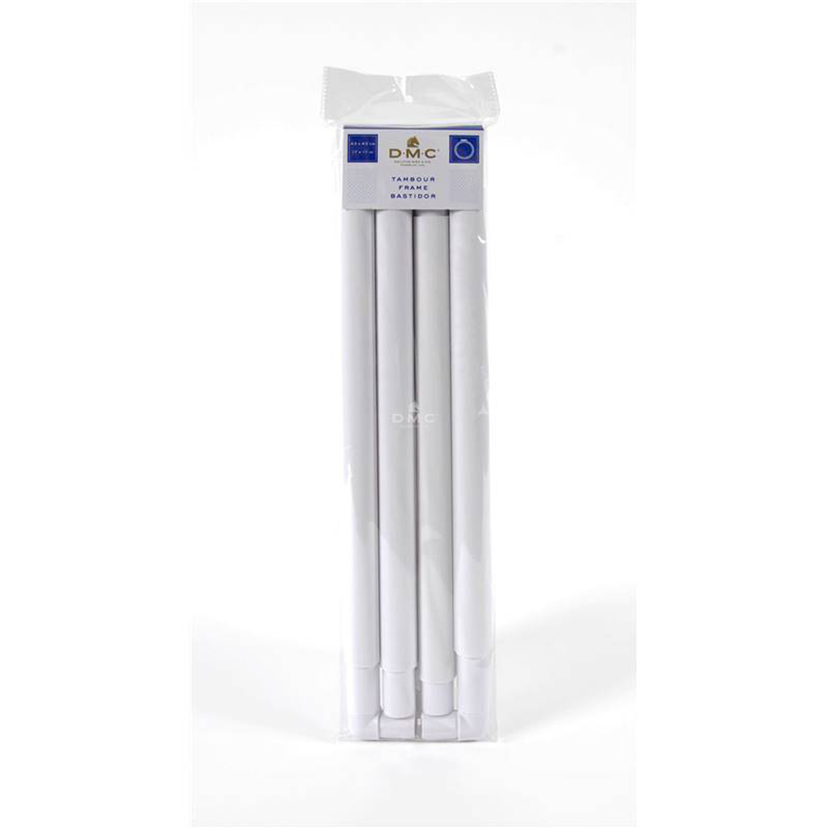 Formaat: 43 x 43 cm. Dit borduurraam van DMC is gemakkelijk in gebruik. Dit kunststof borduurraam zet je eenvoudig in elkaar door de kunststof buizen in elkaar te schuiven en de klemmen om de stof te drukken.
