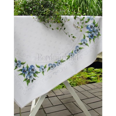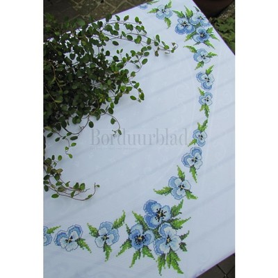 Borduurblad - Digitaal patroon Dekservet met blauwe (winter) viooltjes