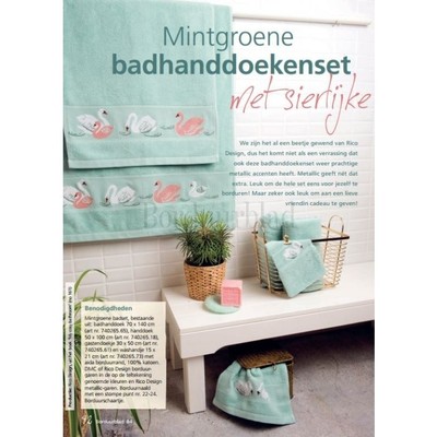 Onderstaande producten zijn net als Patroon Mintgroene badhanddoekenset met sierlijke zwanen te vinden in Borduurblad 84