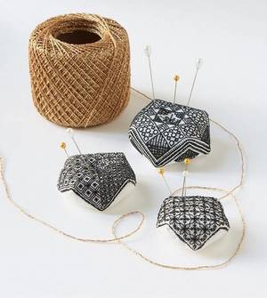 Blackwork is gebaseerd op geteld steken, traditioneel zwart met schaduweffecten.