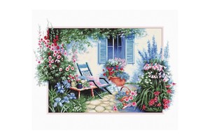 Inhoud: Borduurstof (18 count aida). Borduurgaren. Naald. Instructies. Telpatroon.