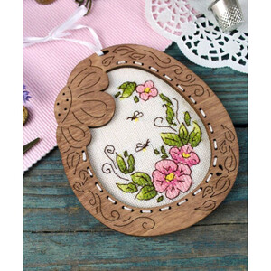 Borduurpakket MP Studia Houten ornament ‘Bloemen’