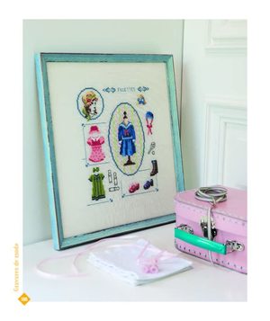 Inhoud: Borduurstof (100% katoen 5,4 steken/cm). Borduurgaren (DMC). Garenkaartje. Naald. Instructies. Vergroot telpatroon.