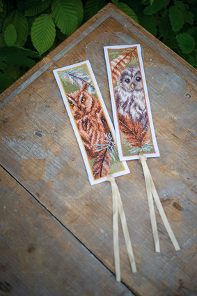 Borduurpakket Vervaco Boekenleggers Set 'Uilen Met Pluimen'