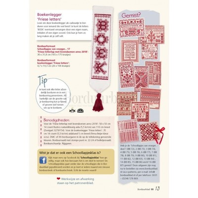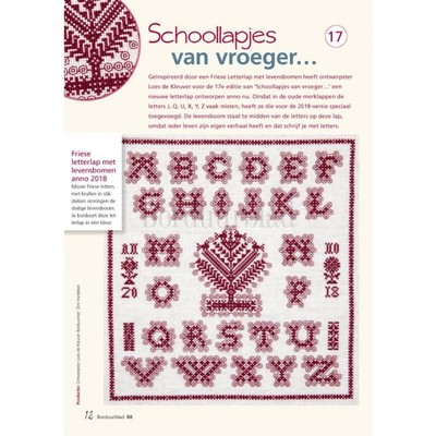 Onderstaande producten zijn net als Digitaal patroon Schoollapjes van vroeger...17 Friese letterlap met levensbomen anno 2018 en Boekenlegger Friese letters te vinden in Borduurblad 88