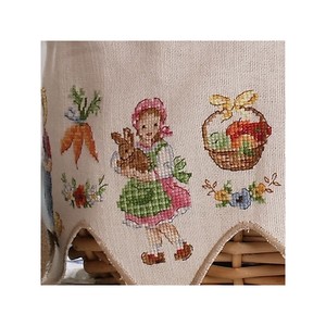 Hier is een klein mandje waar veel mensen jaloers op zullen zijn. Geborduurd op een geschulpte linnen band, zijn deze kleine boeren net zo schattig als de kleine groenten die zij verbouwen. En als je echt bang bent dat je mandje wordt gestolen, leg dan je geborduurde band op je favoriete plank!