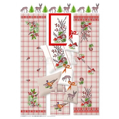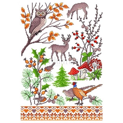 Patroonvel van A3 formaat met diverse motiefjes om te borduren: herfsttakken, dieren, paddestoelen.