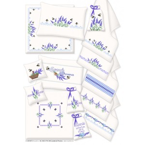 Patroonvel van A3 formaat incl. garenlijst met diverse motiefjes om te borduren: lavendel, landschap, randjes, bijen.