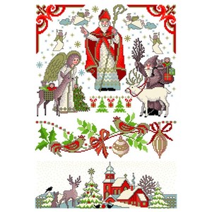 Patroonvel van A3 formaat incl. garenlijst met diverse motiefjes om te borduren: Sint Nicolaas, engelen.