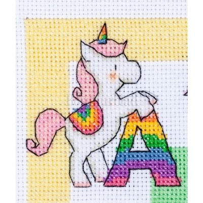 BB85-PATROON EEN EENHOORN-ALFABET IN REGENBOOGKLEURTJES