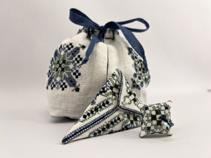 Joke neemt je gedurende zes edities (dit is inmiddels de vijfde editie) mee door de wereld van bijzondere borduursteken. Al gaandeweg ga je samen met haar aan de slag met het maken van een prachtig mooie borduurset die onder andere bestaat uit een schitterende borduurbuidel, een etui voor je schaar en een scharenflop. Het patroon van de scharenflop, het scharenetuitje, de biscornu en het naaldenboekje vond je in de vier vorige edities van Borduurblad. In deze uitgave staat het patroon van het etui voor een tornmesje dat - hoewel je het liever niet gebruikt - toch wel eens van pas kan komen tijdens het borduren. Hoe je dit etuitje precies maakt, legt Joke je natuurlijk uit!