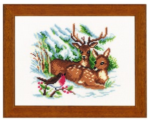 Borduurpakket Vervaco wenskaarten 3 designs ‘Kerstvogeltje en huisje’