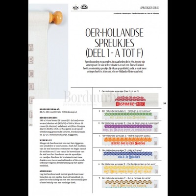Onderstaande producten zijn net als Patroon Oer-Hollandse spreukjes (Deel 1 - A tot F) te vinden in Borduurblad Borduurblad 93