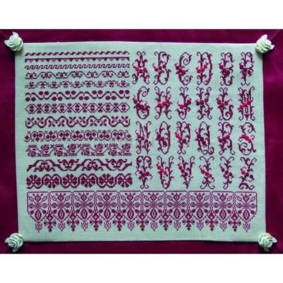 30 x 30 cm Aida (5,4 ct), DMC garen in de op de teltekening genoemde kleuren. Borduurnaald met stompe punt nr. 22-24. Borduurschaartje. Rijggaren.