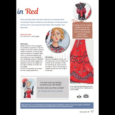 Onderstaande producten zijn net als Patroon The Lady Red (De dame in het rood) te vinden in Borduurblad 89