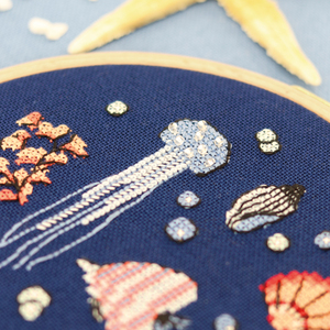 Zeepaardjes, visjes, schelpen… Dit borduurpatroon van Zweigart brengt de