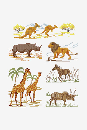 De Big Five mag in deze sampler met als thema wild life natuurlijk niet ontbreken. De leeuw, het luipaard, de neushoorn, de olifant en de buffel zijn dan ook alle vijf door ontwerpster Maria Diaz verwerkt in deze prachtige sampler. Het leuke van deze serie samplers vinden we dat Maria ook allemaal leuke grapjes verstopt in haar ontwerp. Een luipaard en een gazelle die een hardloopwedstrijd doen of een hyena die ijsje eet aanschouwd door een drietal stokstaartjes. Grappig en extra leuk om te borduren!
