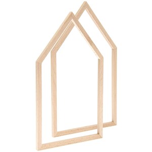 Houten frame in de vorm van een huisje. Leuk om je borduurwerk in te presenteren.
