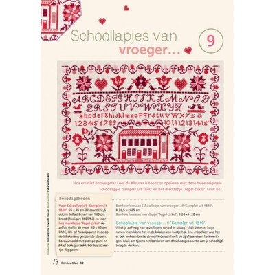 Onderstaande producten zijn net als Schoollapje van vroeger...9 Merklapje Tegel-cirkel te vinden in Borduurblad 80